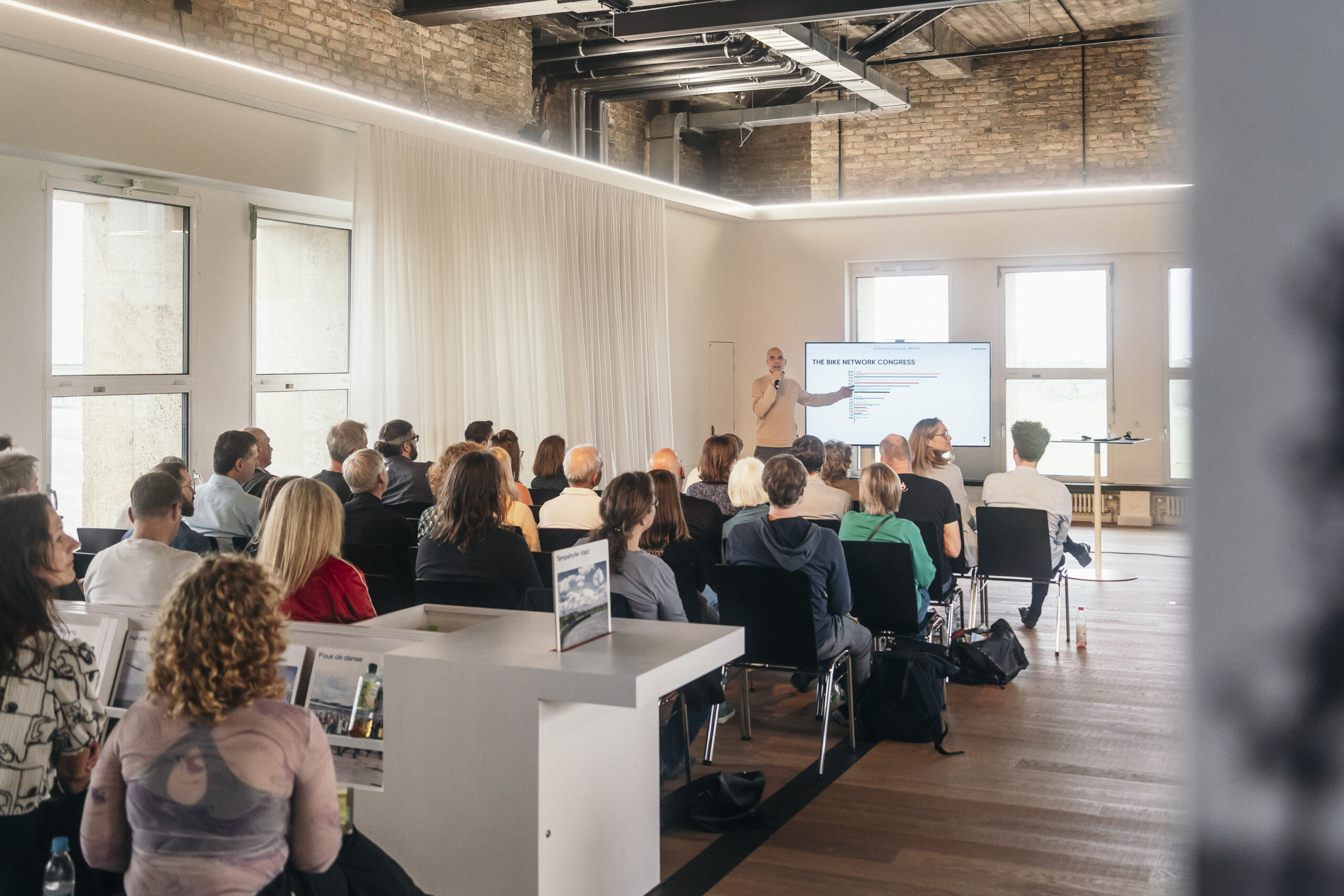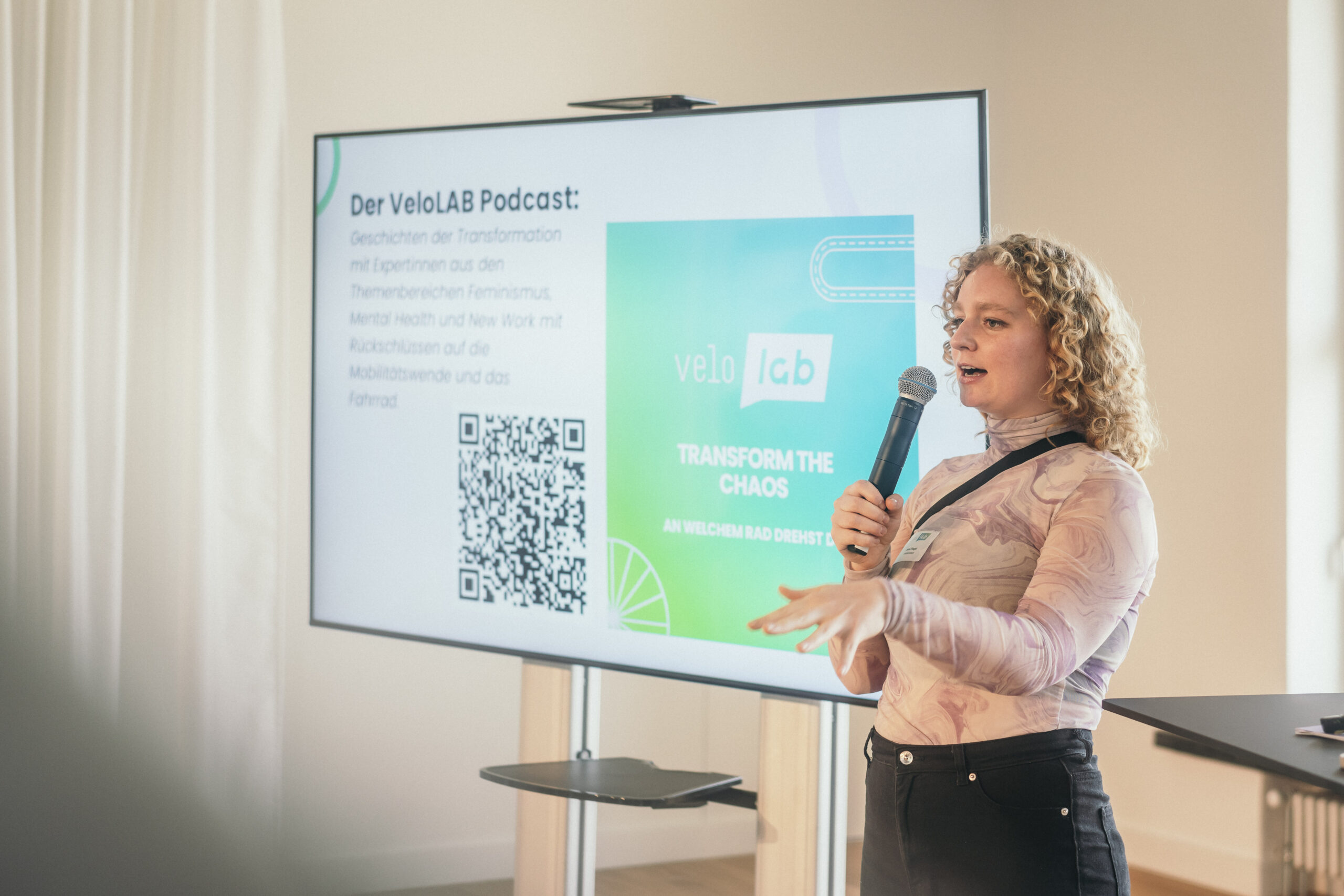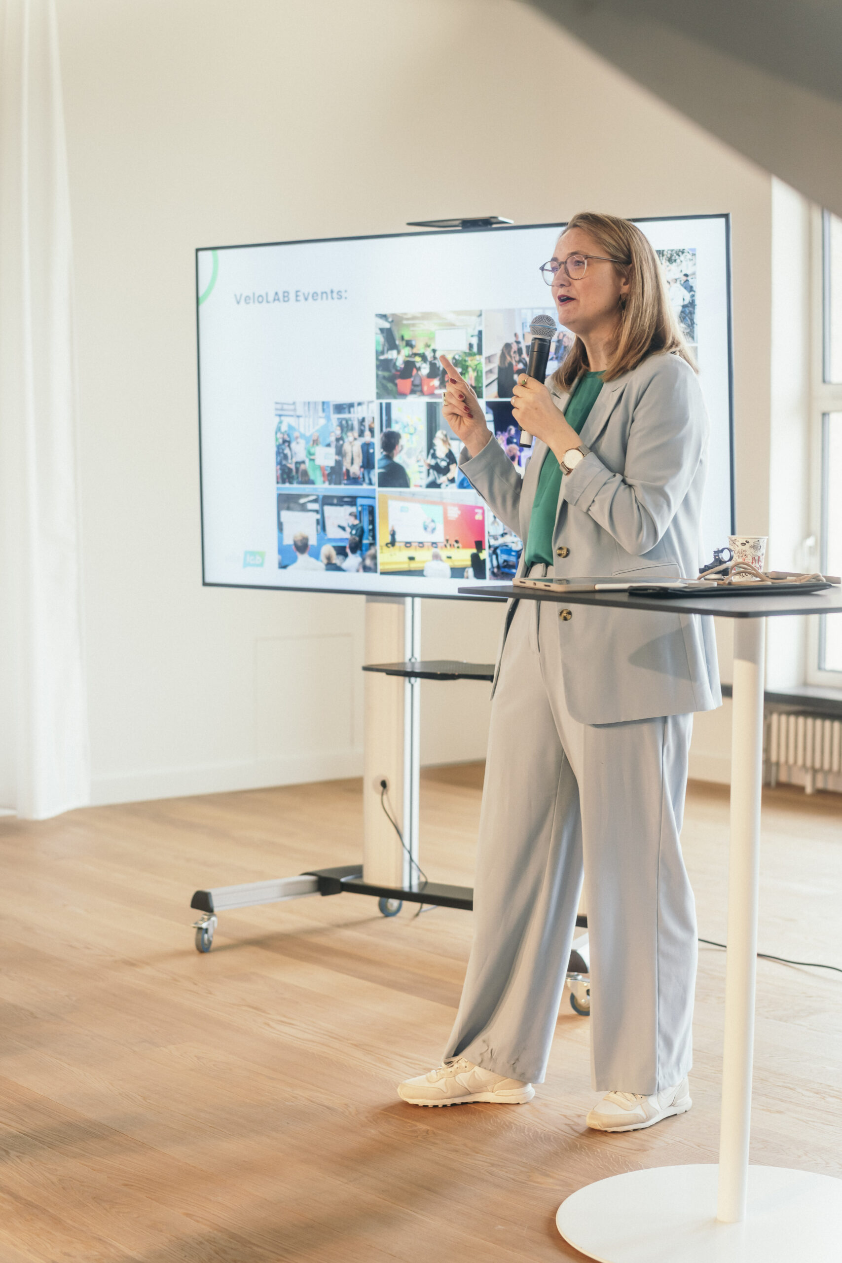 Auf der Abschlussveranstaltung der Innovationsplattform VeloLAB wird mit zahlreichen Engagierten und Interessierten im Tempelhof Tower die gelungene akteursübergreifende Zusammenarbeit gefeiert. Mit einer Vielzahl von Präsentationen, Diskussionen und Networking-Gelegenheiten bietet das Programm Einblicke in die erzielten Erfolge und einen Ausblick auf zukünftige Entwicklungen im Bereich der Förderung des Fahrradverkehrs. Zu den Highlights gehört die Vorstellung der Prototypen eines Poller-Systems, der Podcast „Transform The Chaos“ und das Veloversum – die ultimative Fahrradwelt.